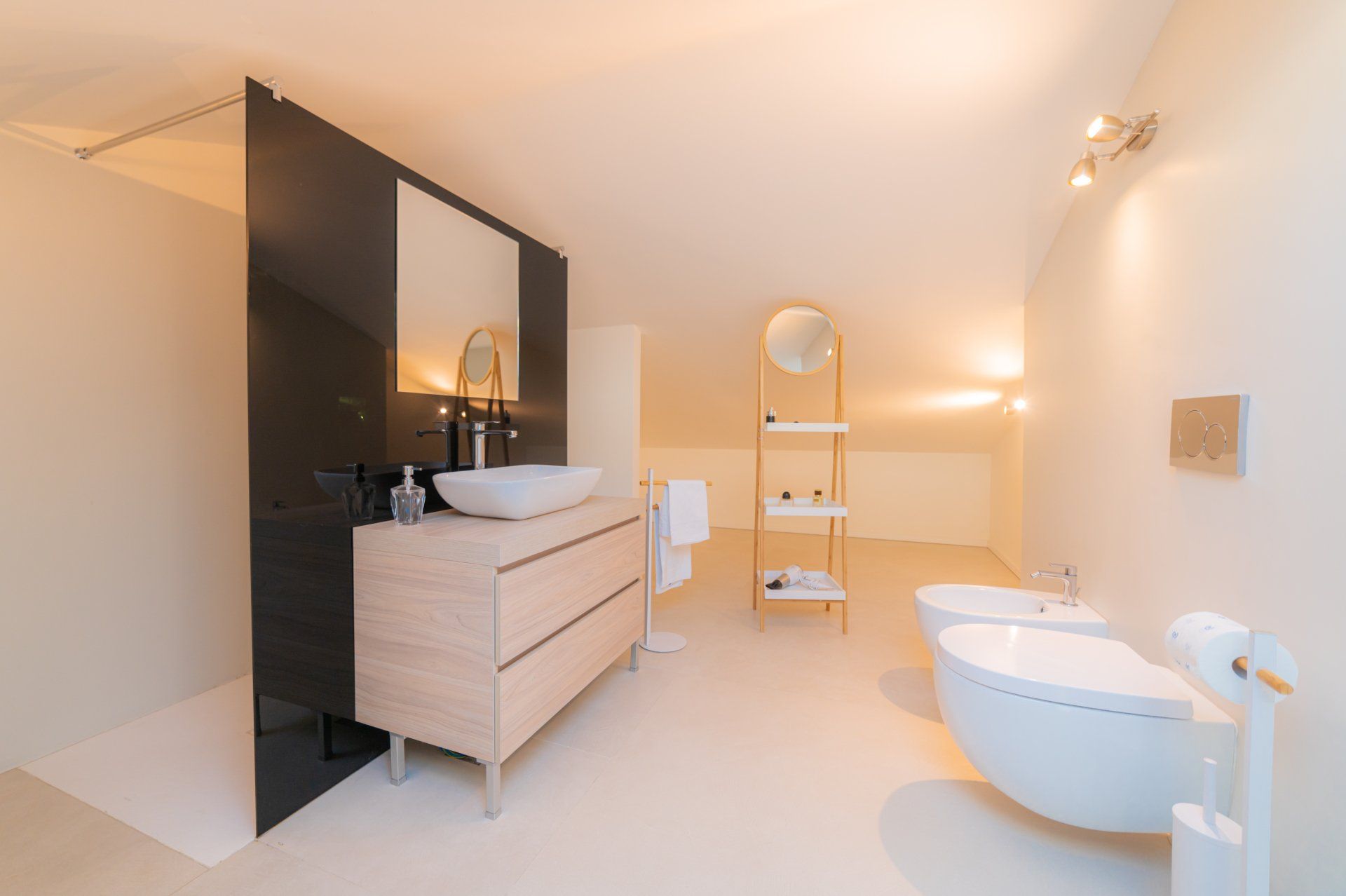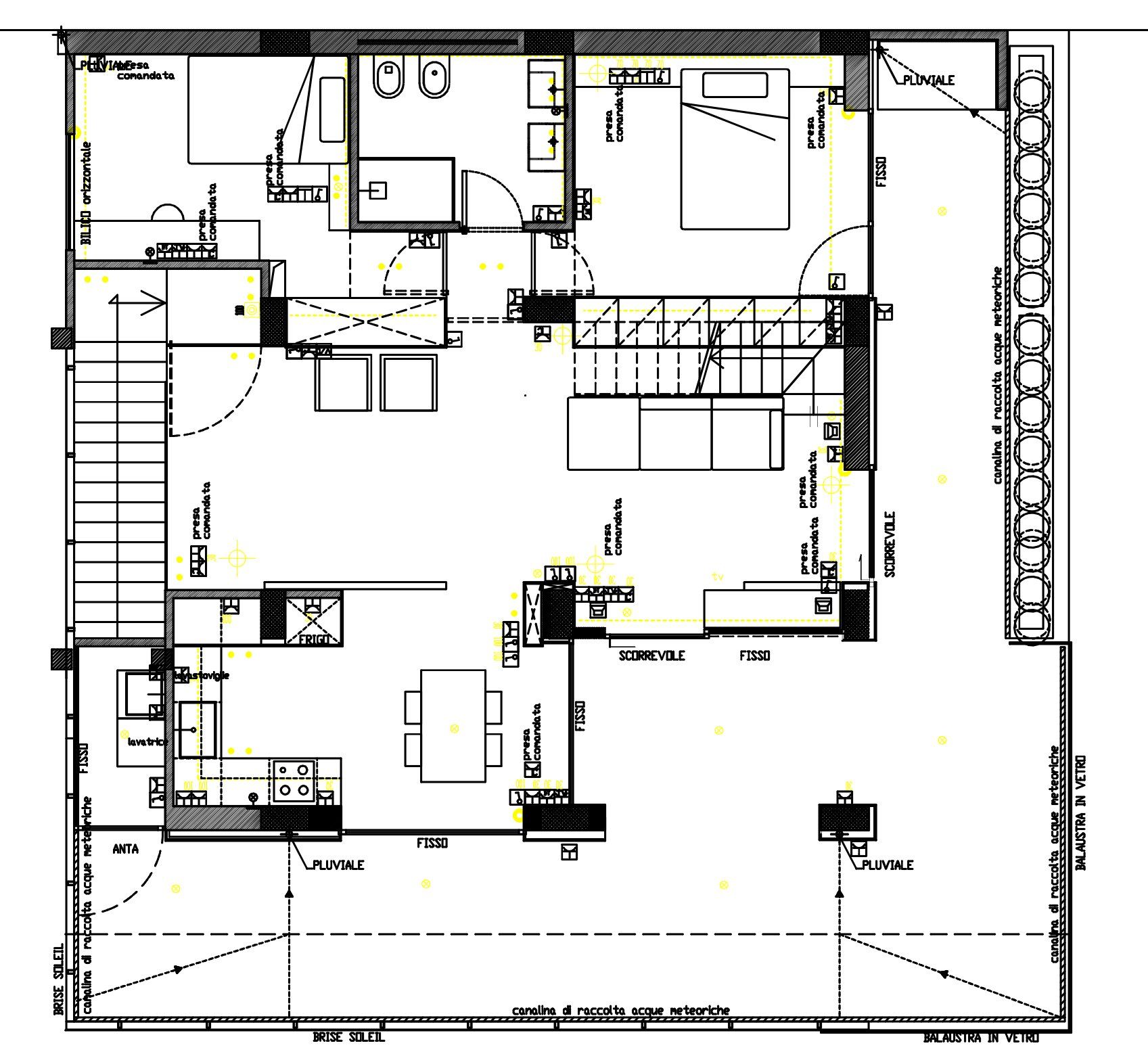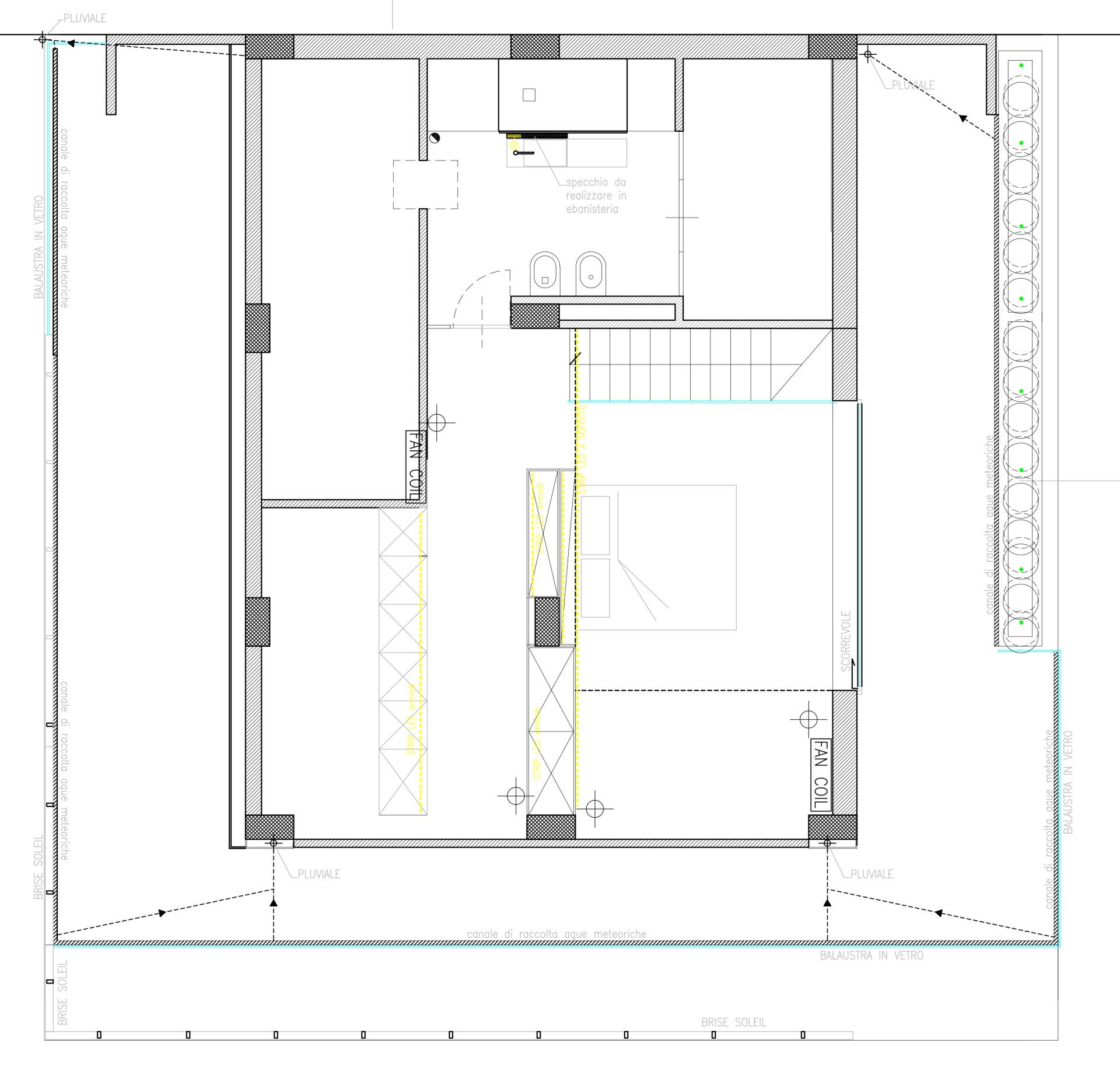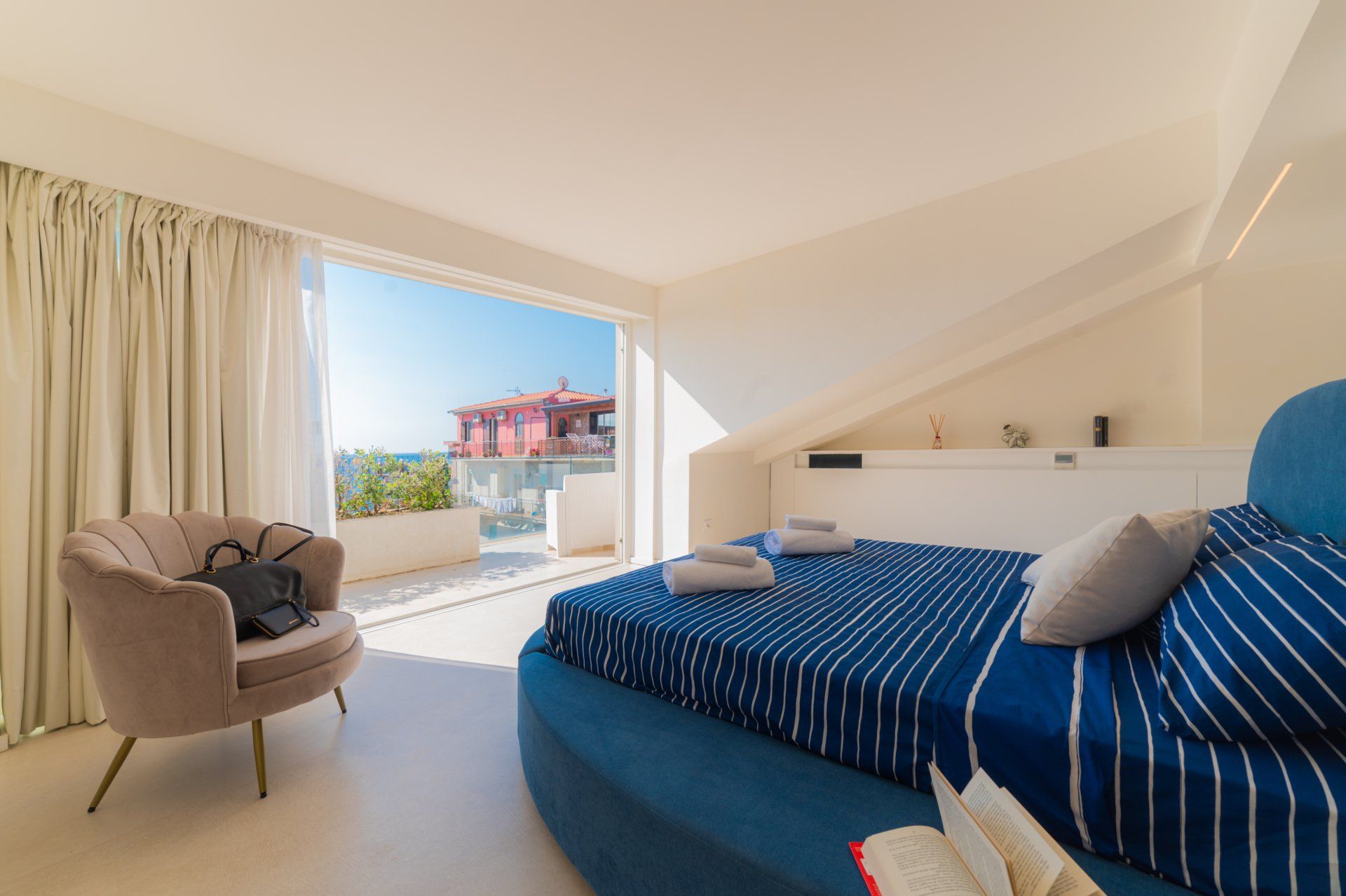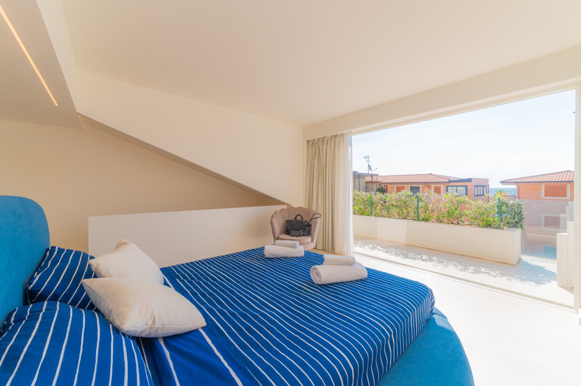Al piano superiore si trova una mansarda abitabile destinata a camera padronale con scorcio sul mare, bagno esclusivo con grande doccia, cabina armadio, il tutto circondato da un terrazzo con divani e sdraio.