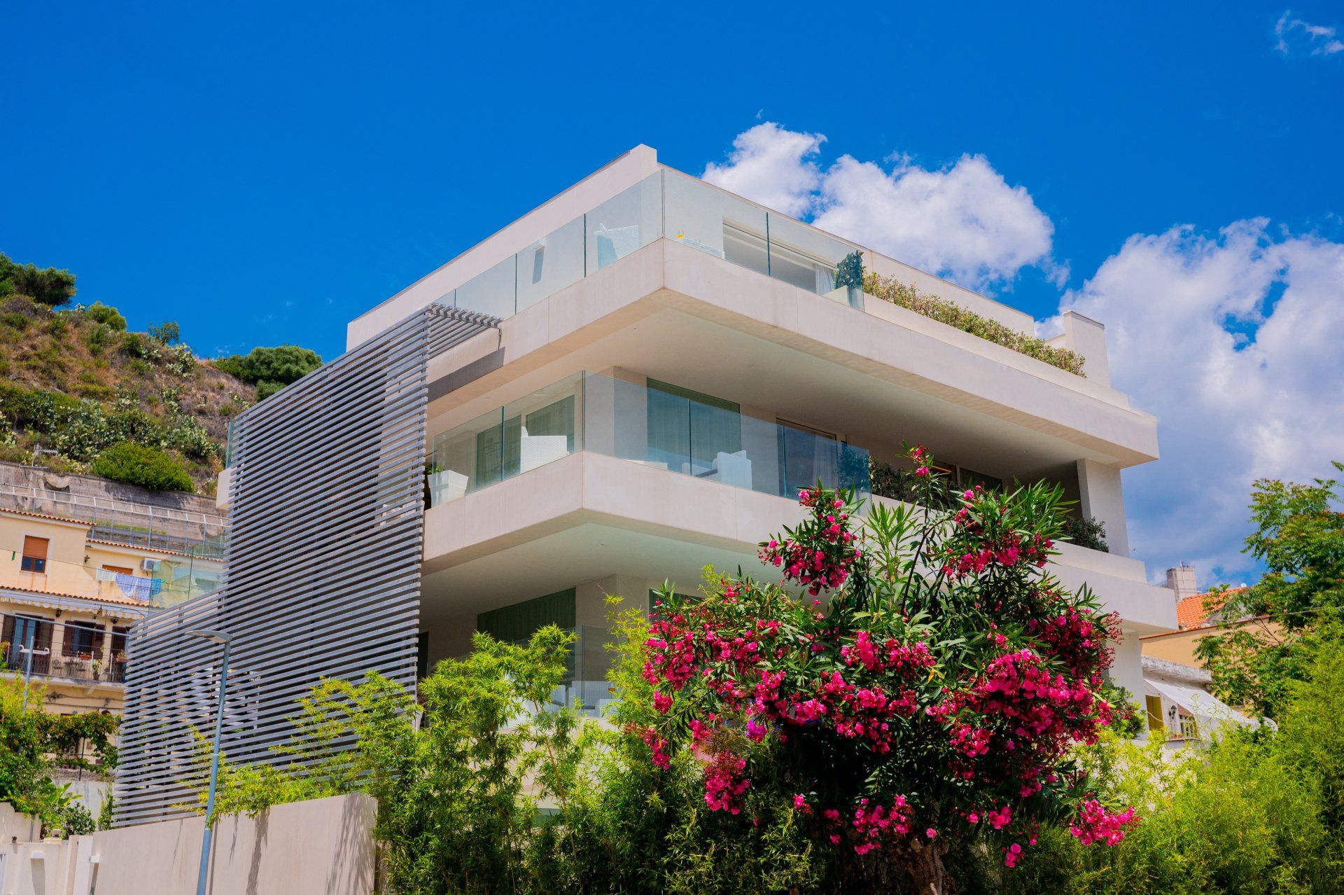 L’Appartamento nuovissimo, dal design moderno, luminoso e dotato di tutte le comodità, si trova al secondo piano di una palazzina di design disegnata dall’architetto Antonio Iraci situata a Mazzeo, frazione sul mare del comune di Taormina, a 20 metri dalla spiaggia, dotata di posto auto privato.