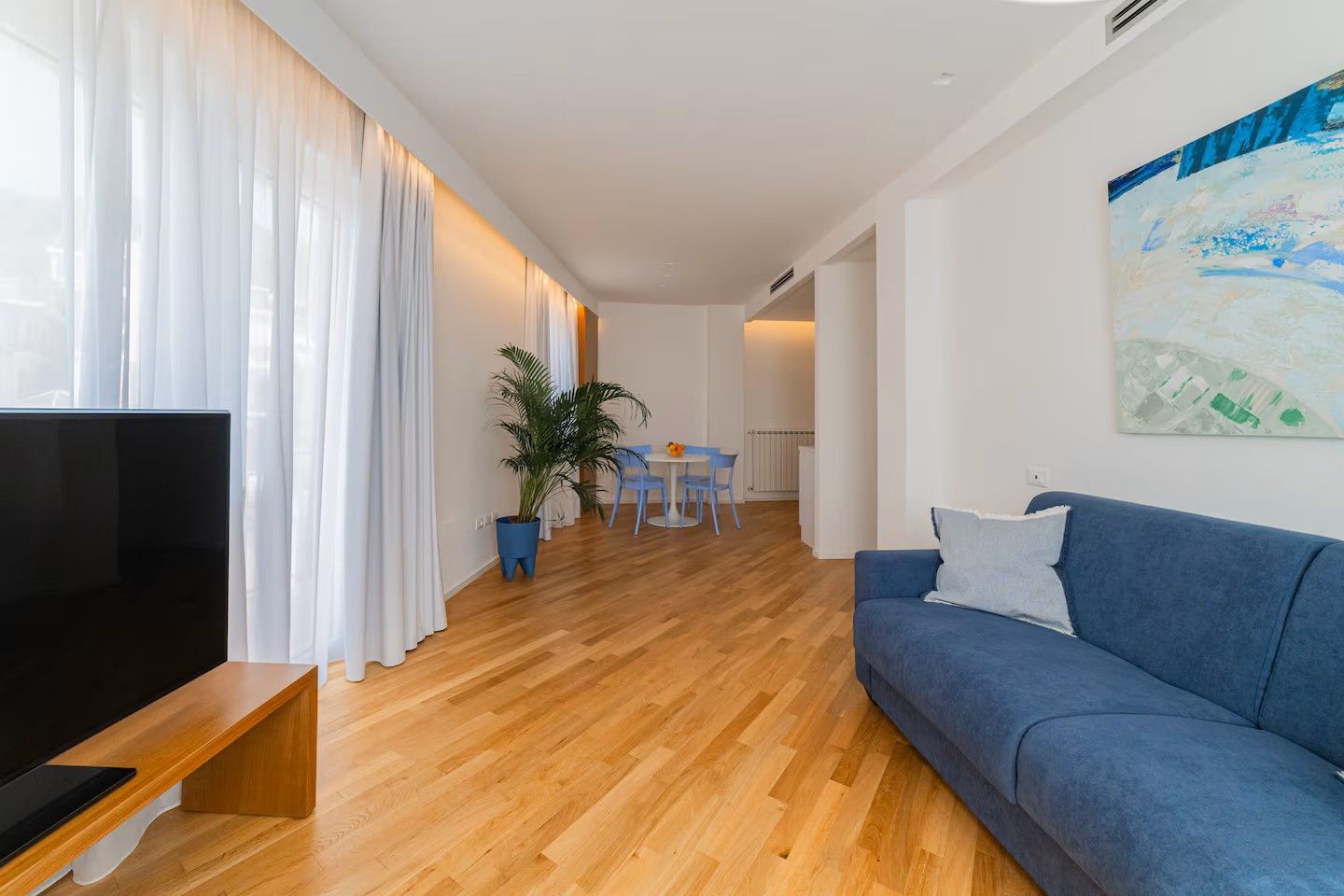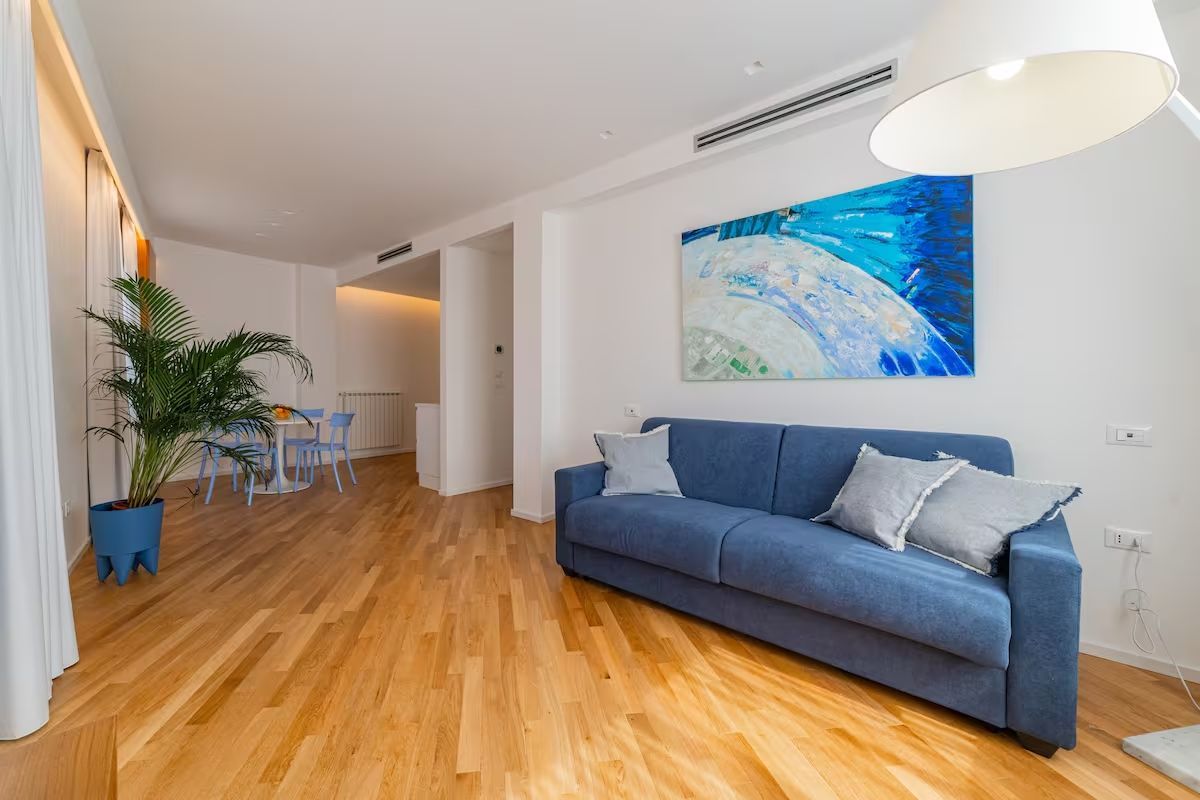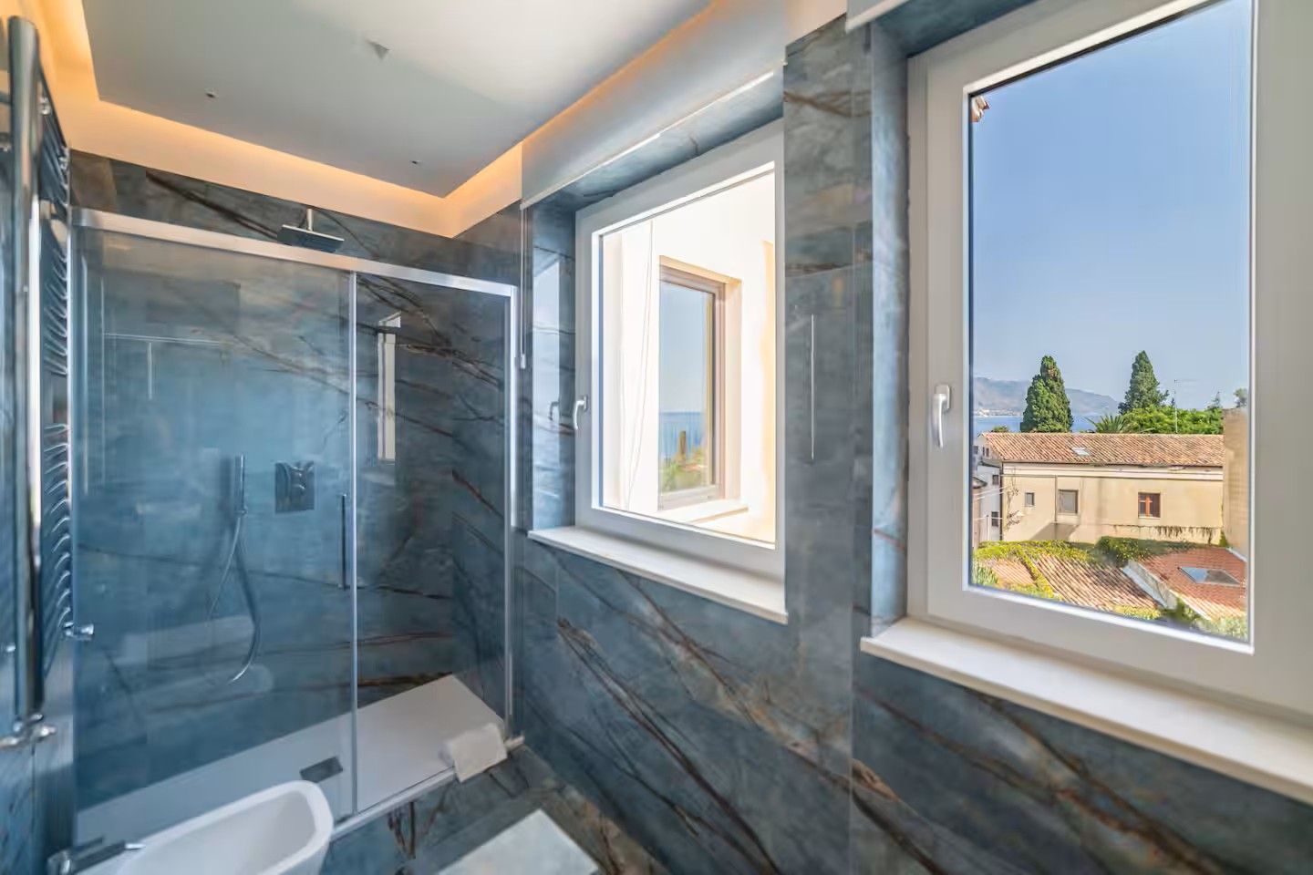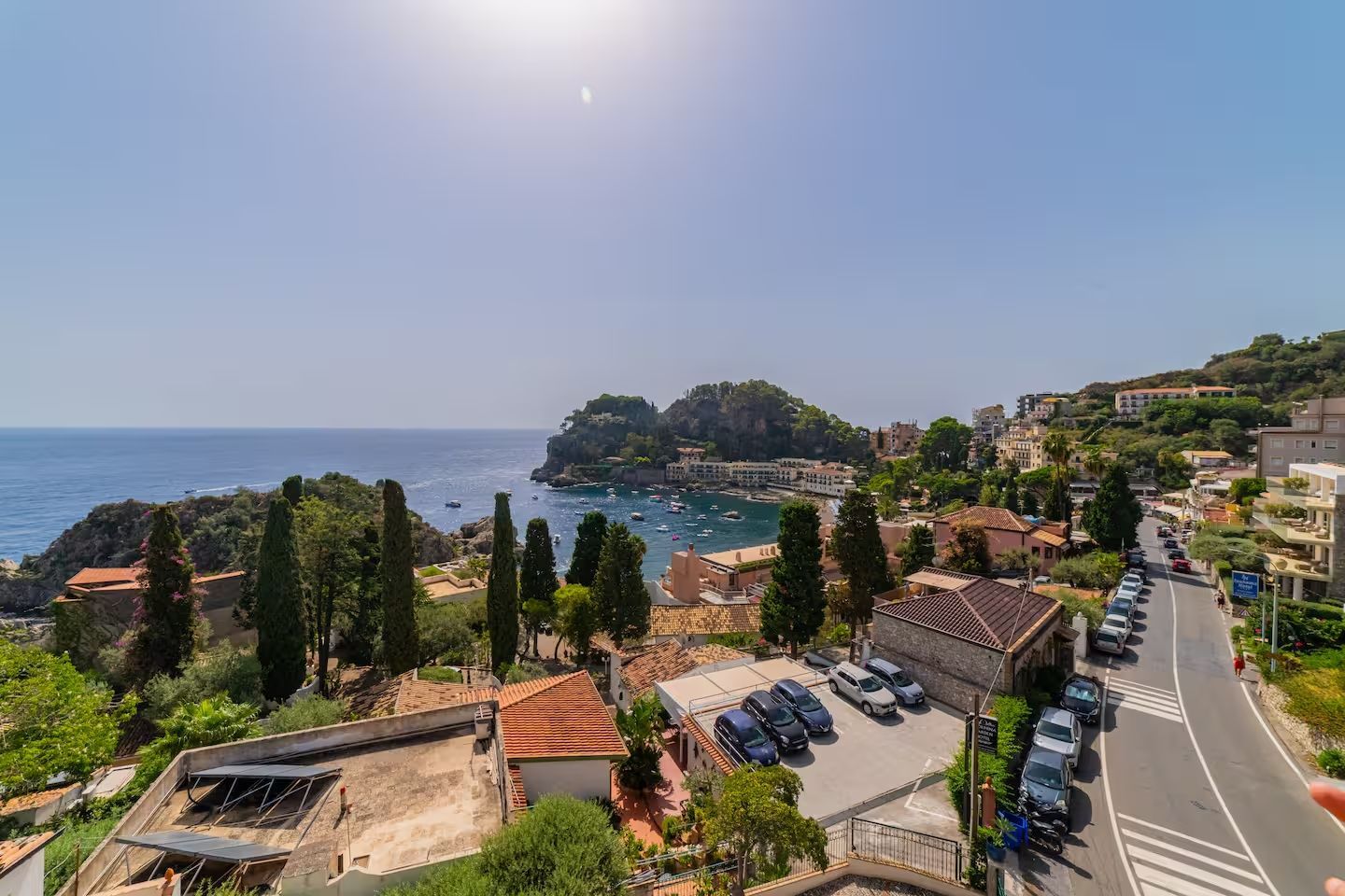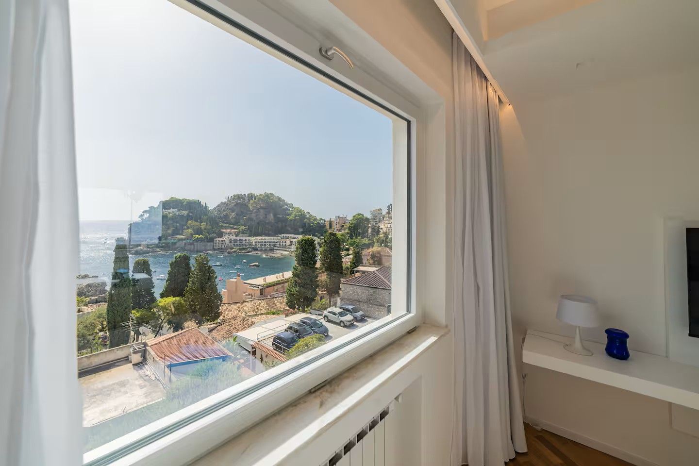 L'appartamento è situato al terzo piano di una palazzina con vista mozzafiato sulla baia di Mazzarò. E' stato ristrutturato nel 2024 e curato nei dettagli ed è composto da una ampia zona pranzo e soggiorno con balcone, una camera letto con vista mare e un grande bagno rivestito in marmo azzurro e finestrato, pavimento il rovere per tutta la superficie.