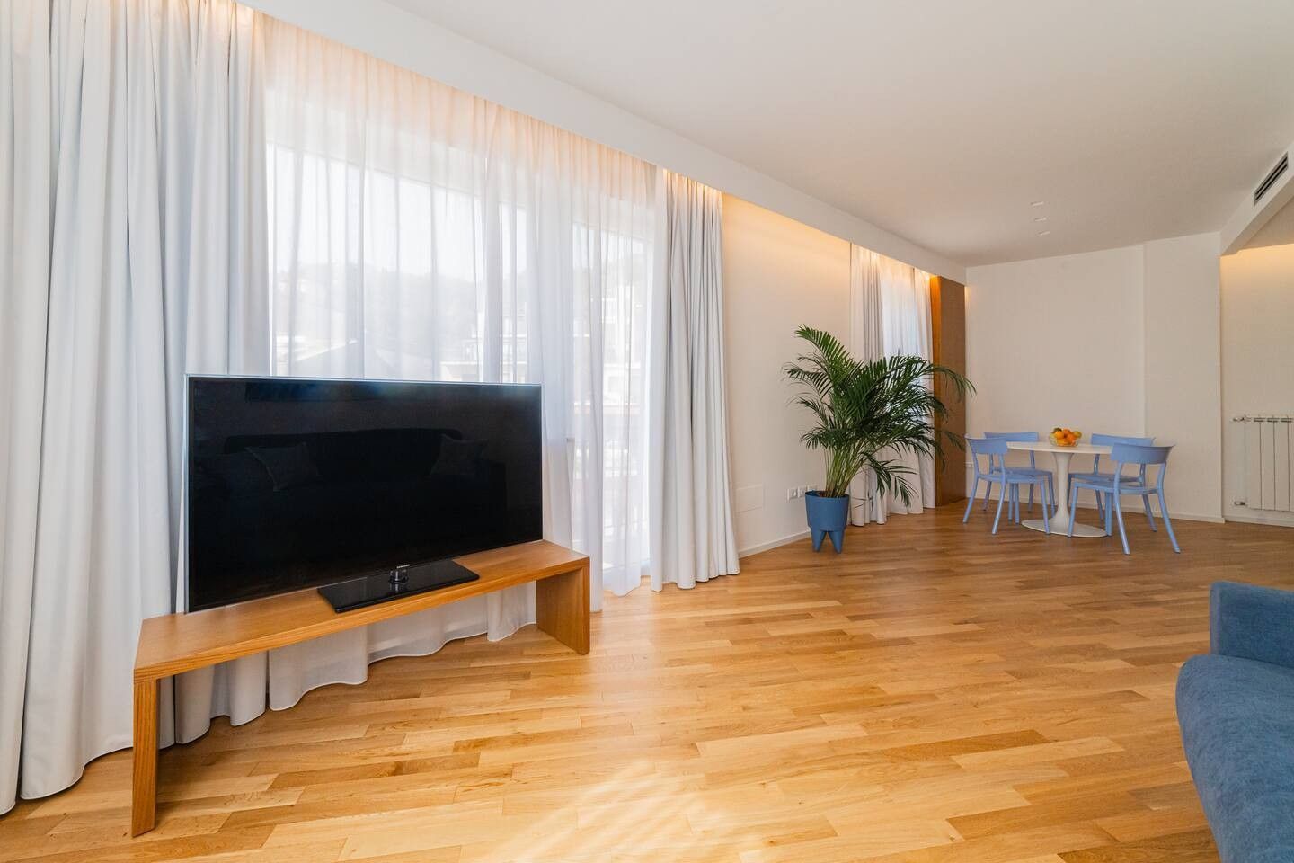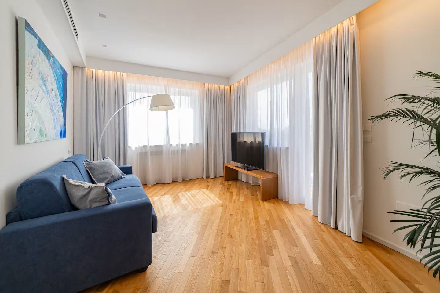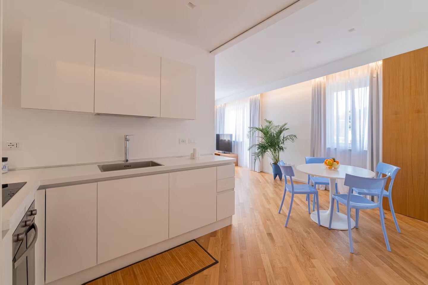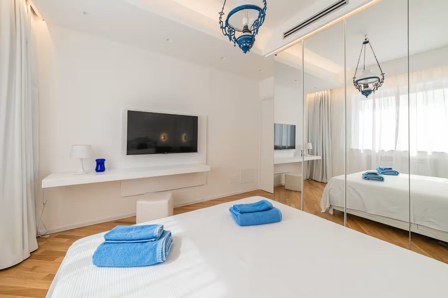 L'appartamento è situato al terzo piano di una palazzina con vista mozzafiato sulla baia di Mazzarò. E' stato ristrutturato nel 2024 e curato nei dettagli ed è composto da una ampia zona pranzo e soggiorno con balcone, una camera letto con vista mare e un grande bagno rivestito in marmo azzurro e finestrato, pavimento il rovere per tutta la superficie.