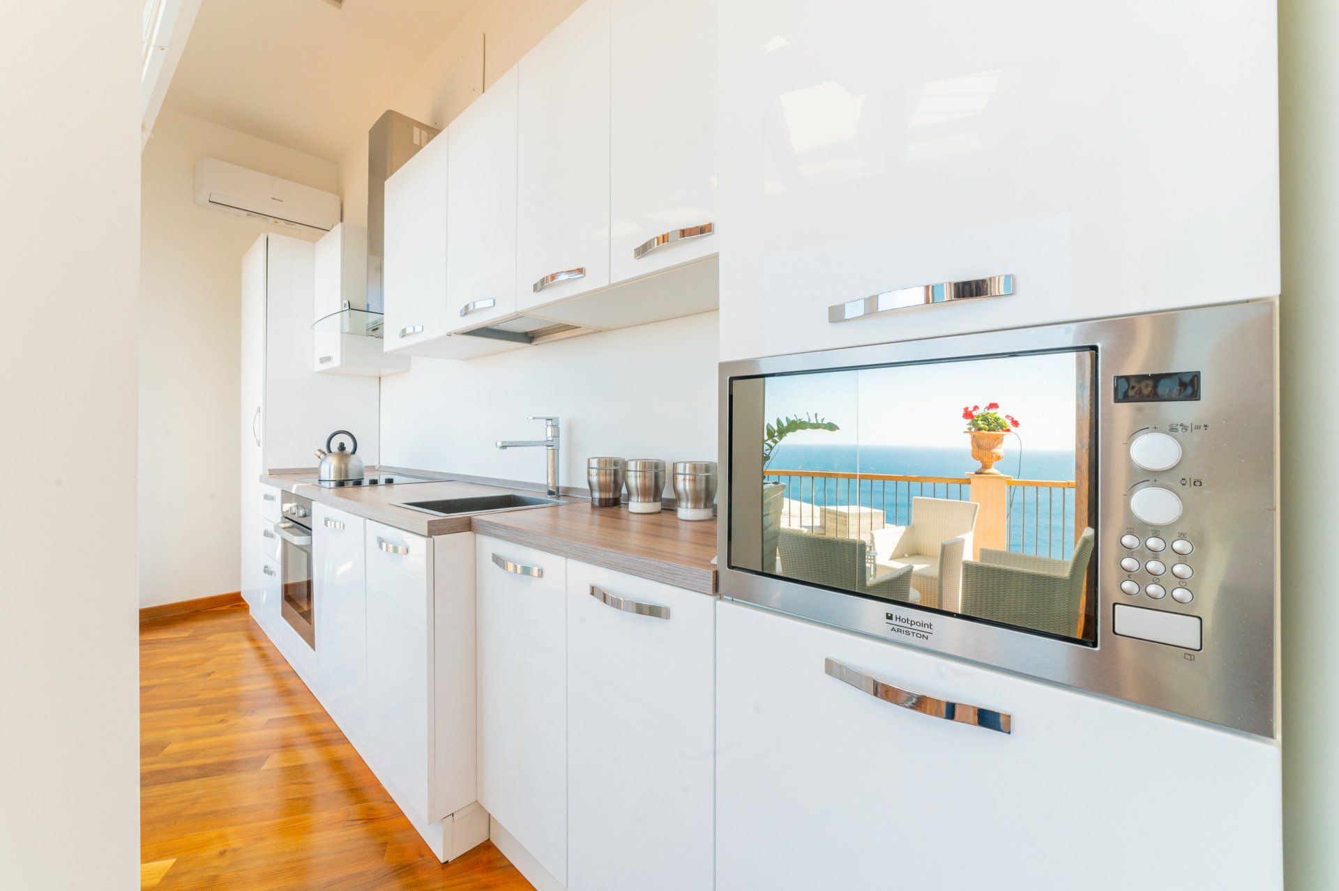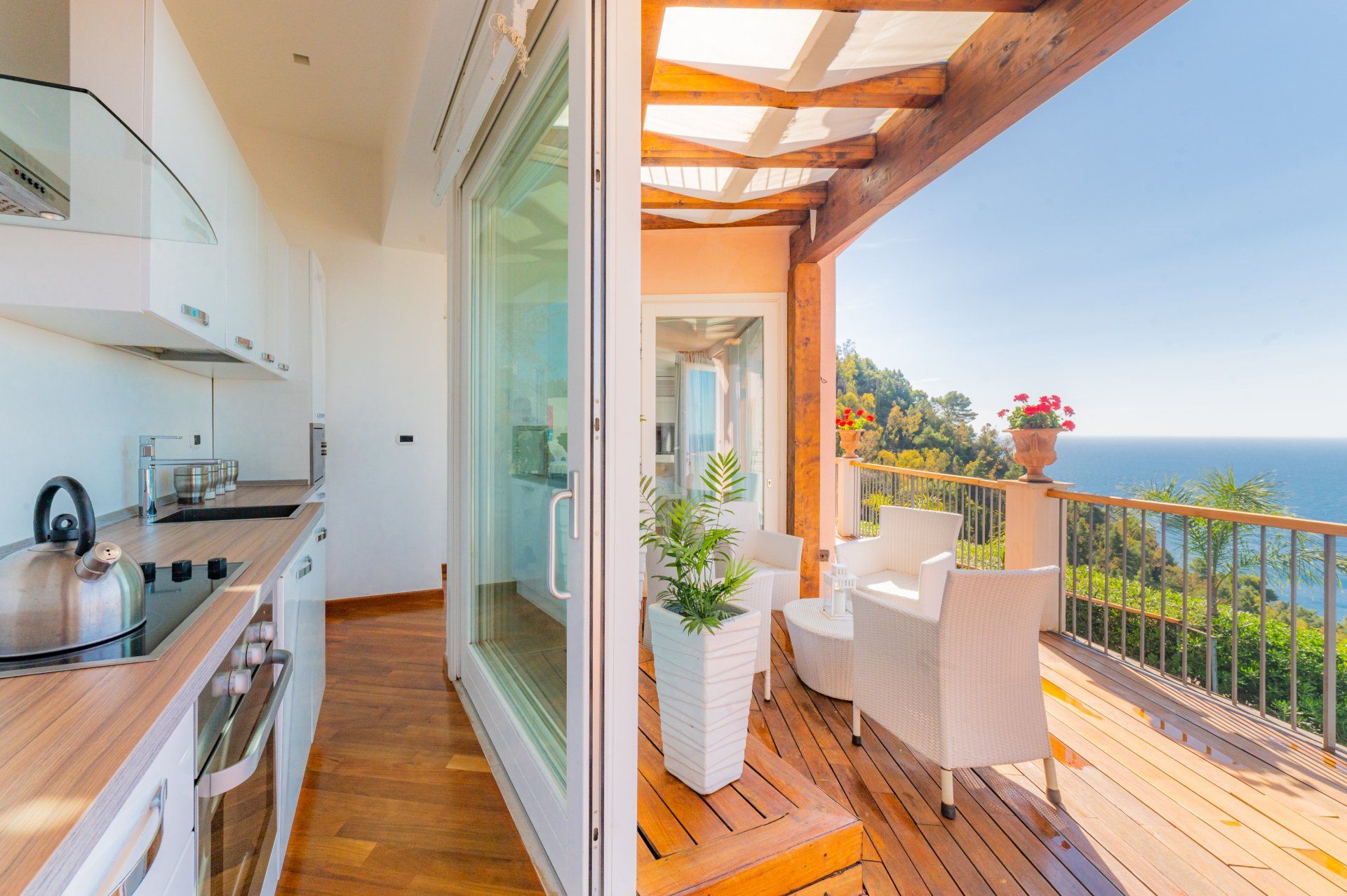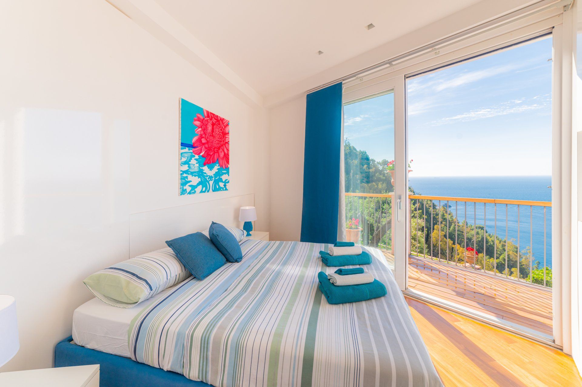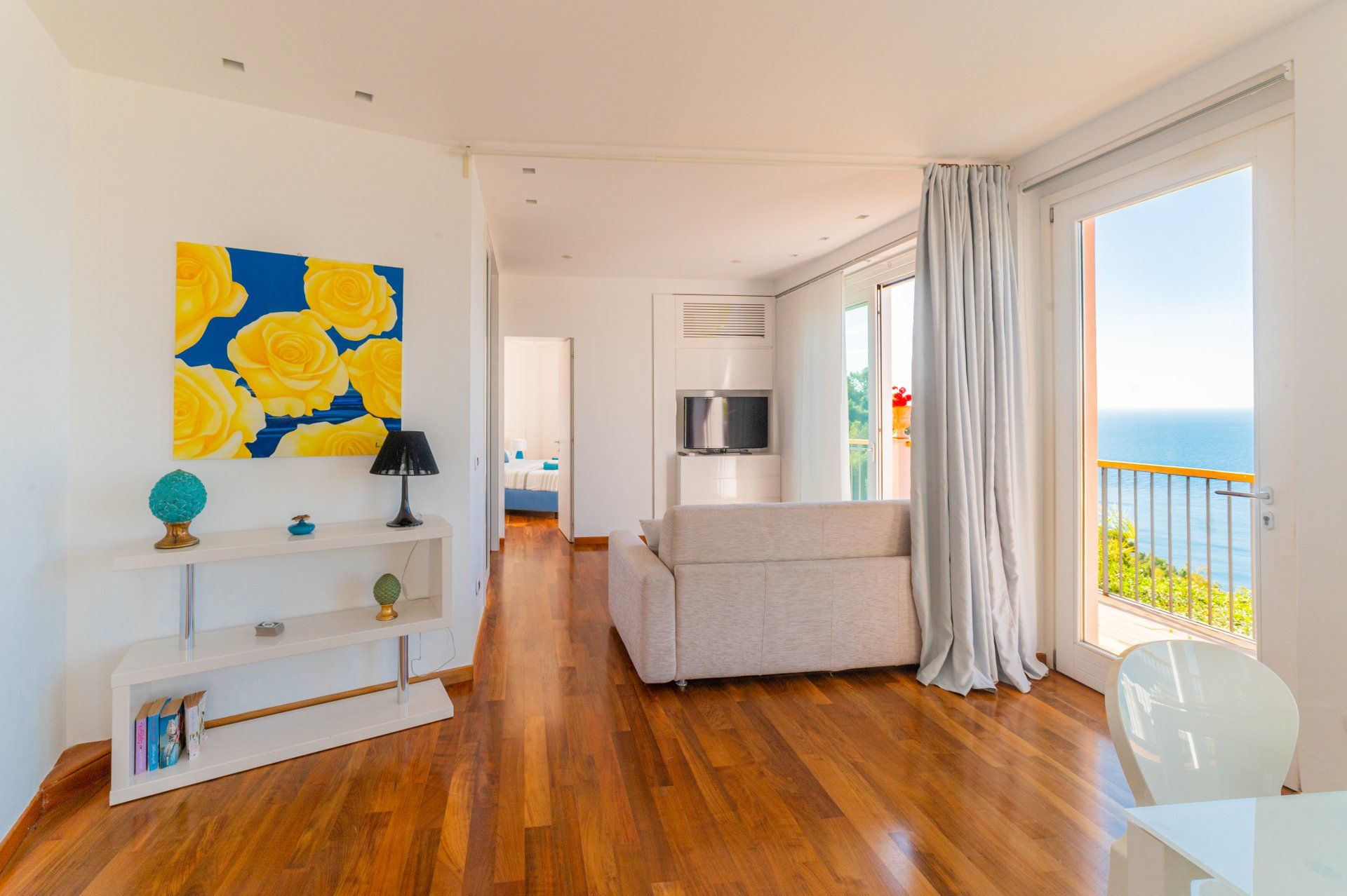 È composto da una camera da letto matrimoniale, soggiorno con divano letto e sala pranzo, cucina attrezzata bagno in mosaico, lavanderia esterna, grandi vetrate che permettono la vista del mare da ogni angolo della casa.