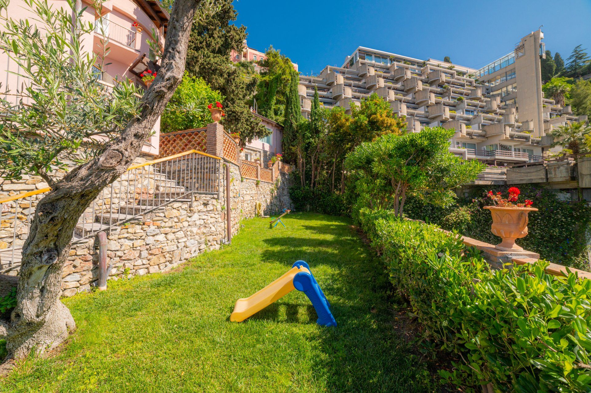 A Taormina, nel parco dei giardini pubblici, a 10 minuti a piedi da Corso Umberto e Parco Duchi di Cesarò, teatro greco, campi da tennis e spiagge, all’interno della stessa villa si trova la “dependance” luminoso appartamento di 55 mq con arredi moderni e vista mare. L’alloggio, tranquillo e lontano dalla confusione, ha un ingresso indipendente e un comodissimo posto auto direttamente nel parcheggio della villa.