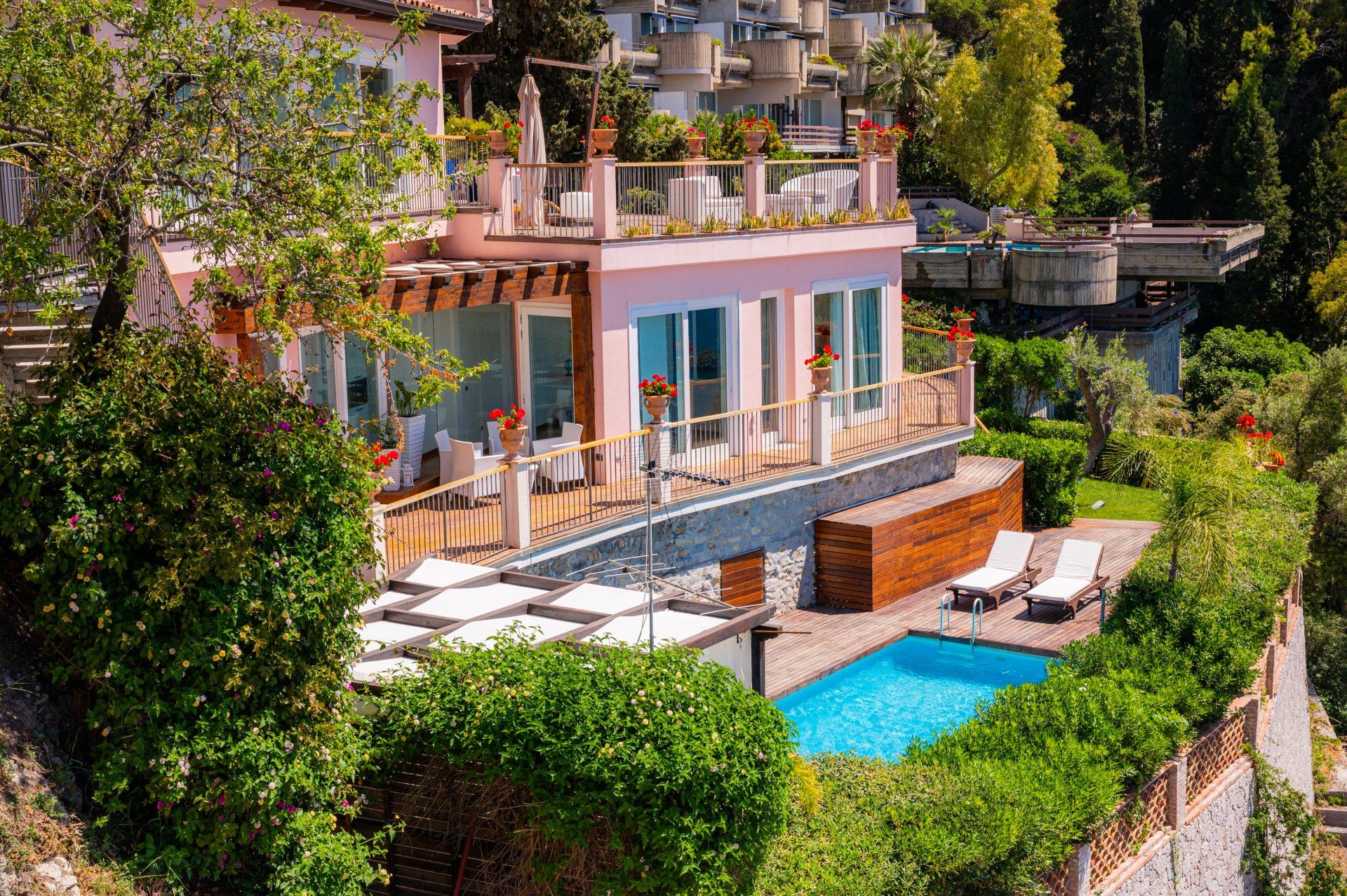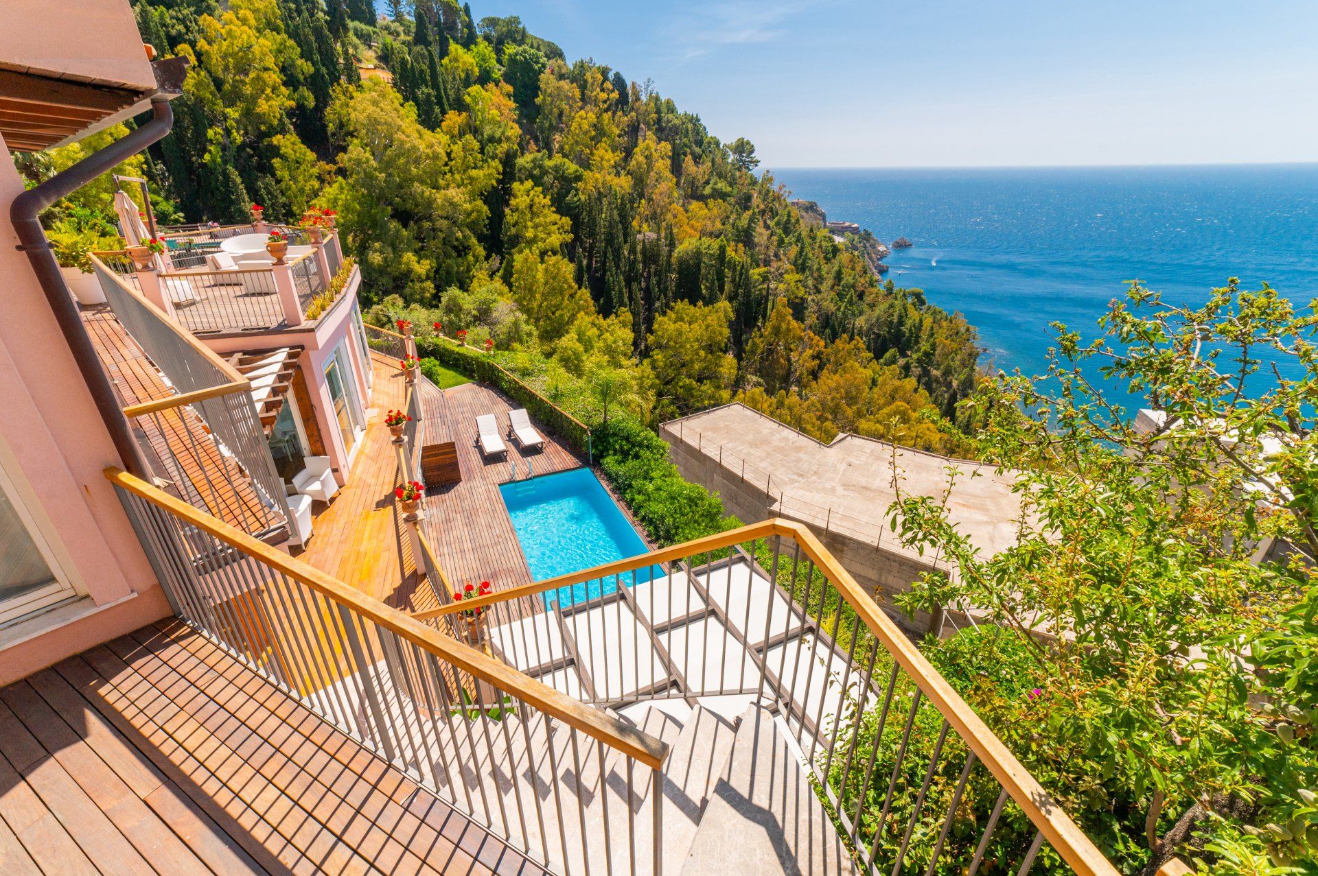 Dependance vista mare a Taormina con piscina