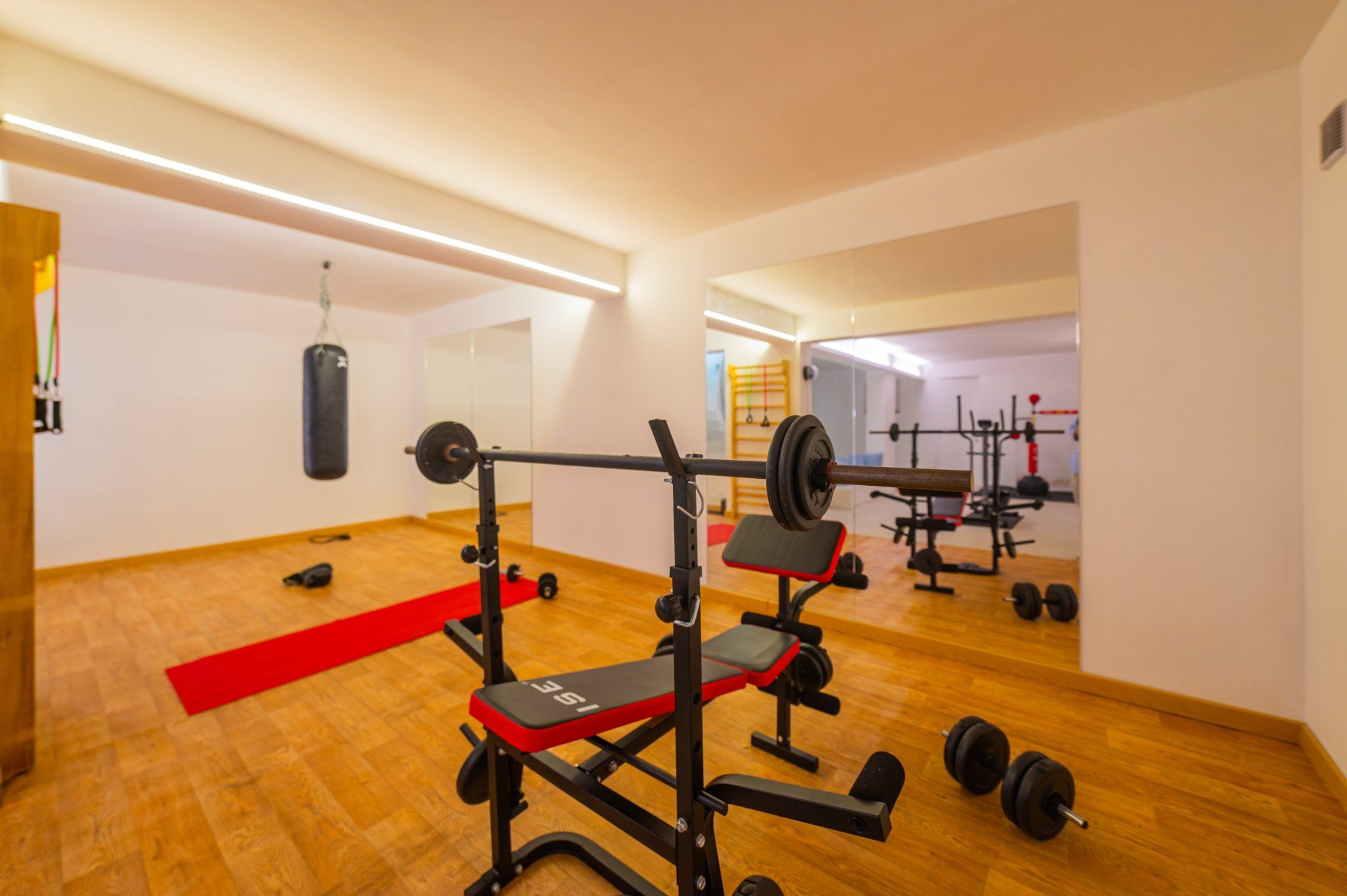 Per completare, per chi ama mantenersi in forma durante la vacanza, al piano interrato si trova la palestra attrezzata fornita di bagno con doccia.